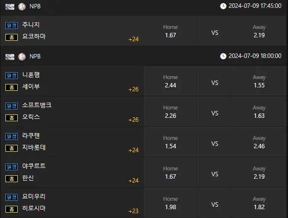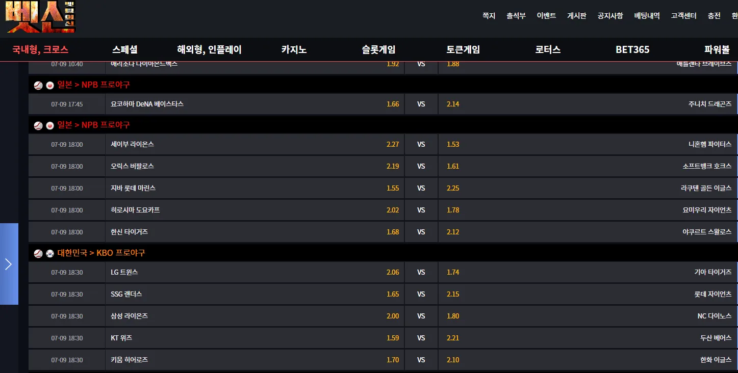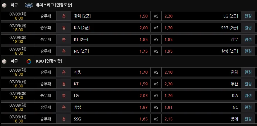 7월9일 야구 종합 배당들